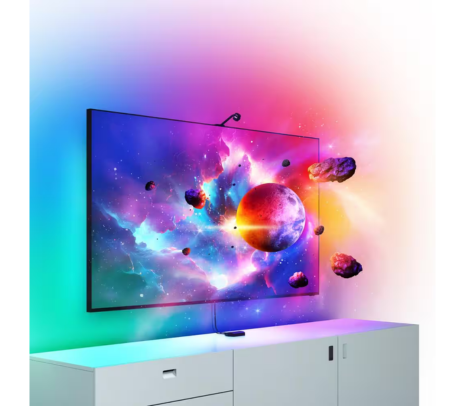 Experimente el efecto ultra inmersivo «4D» mientras la vibrante retroiluminación ilumina su espacio con los colores de sus programas, películas y videojuegos favoritos