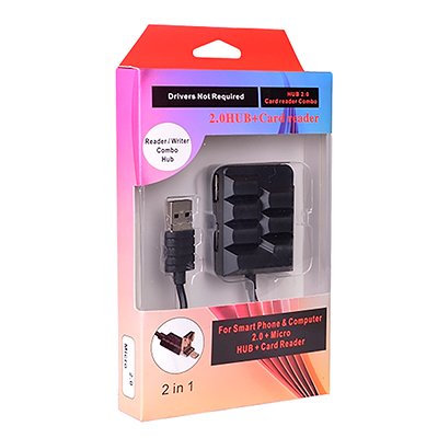 HUB USB 2.0 Y LECTOR DE TARJETAS (COMBO) K-619 – USB 2.0 A (M) / USB MICRO B (M). 7».