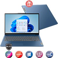 LENOVO – NOTEBOOK IDEAPAD SLIM 3 15ABR8 – MIL-STD-810H. 15,6» MULTITÁCTIL IPS ANTI-REFLEJO. AMD RYZEN 7 7730U. AMD RADEON. WINDOWS 11. RAM 16GB / SSD 512GB. CÁMARA WEB. WIFI. BLUETOOTH. LI-PO 47Wh. DE REGALO: MICRÓFONO «MP206102PNK» o «MP206102SLV.