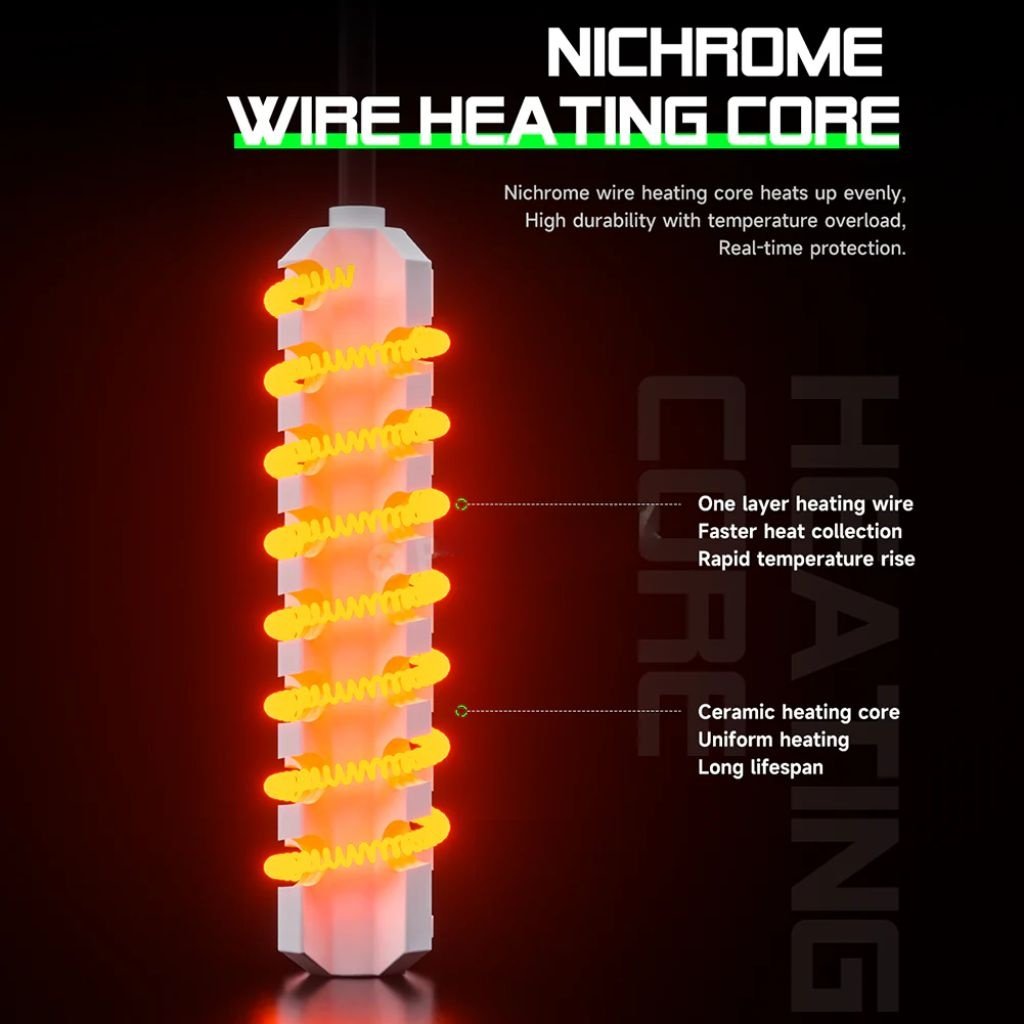 Núcleo calentador de alambre de nicromo permite calentamiento uniforme y aumento rápido de la temperatura.