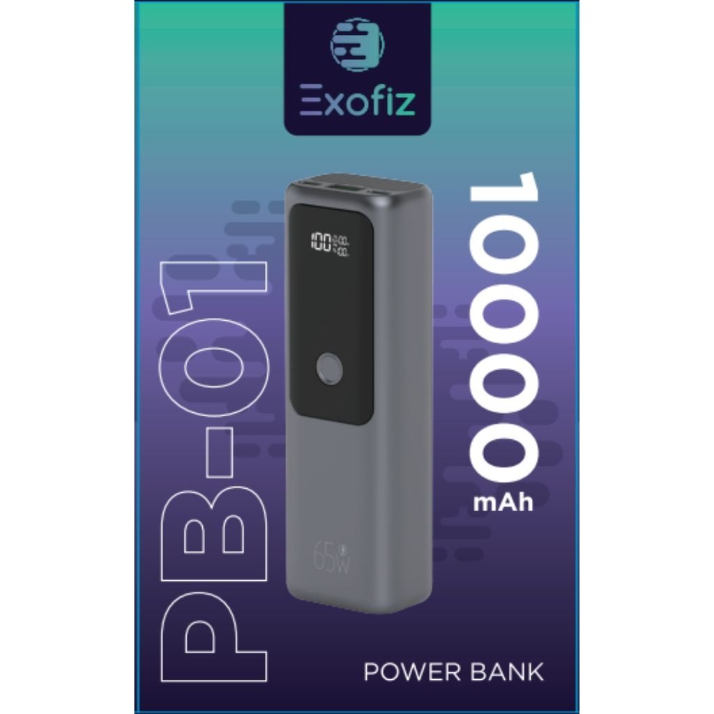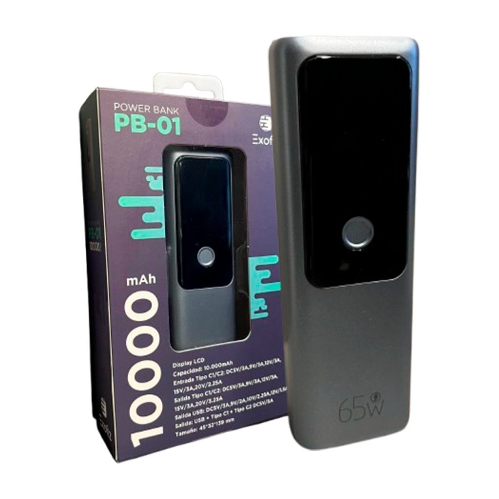 Power Bank Exofiz PB-01 10.000mAh 65W Entrada Tipo C / Salida USB + Tipo C1 + Tipo C2