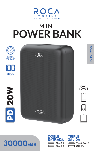 Power Bank ROCA Mini RC-PB-P9/30 30.000mAh 20W Entrada: 2 Tipo C / Salida: USB + Tipo C