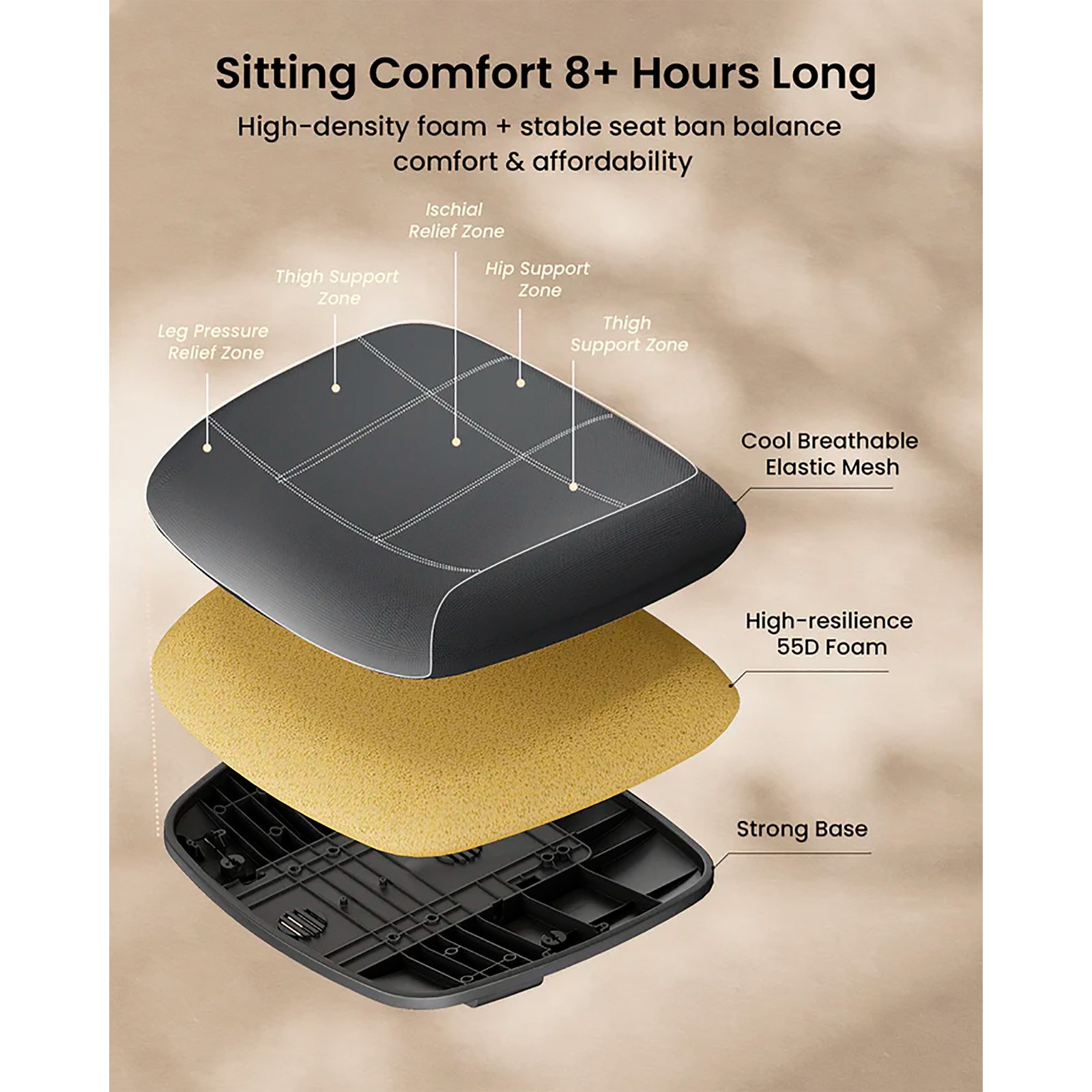 La silla EC200 ofrece un área de asiento increíblemente espaciosa, que brinda un amplio espacio para moverse y una comodidad excepcional. Puede ajustar y posicionarse libremente, y disfrutar de una experiencia de asiento más amplia.