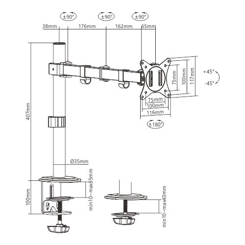 Compatible con VESA: 100 x 100, 75 x 75 mm