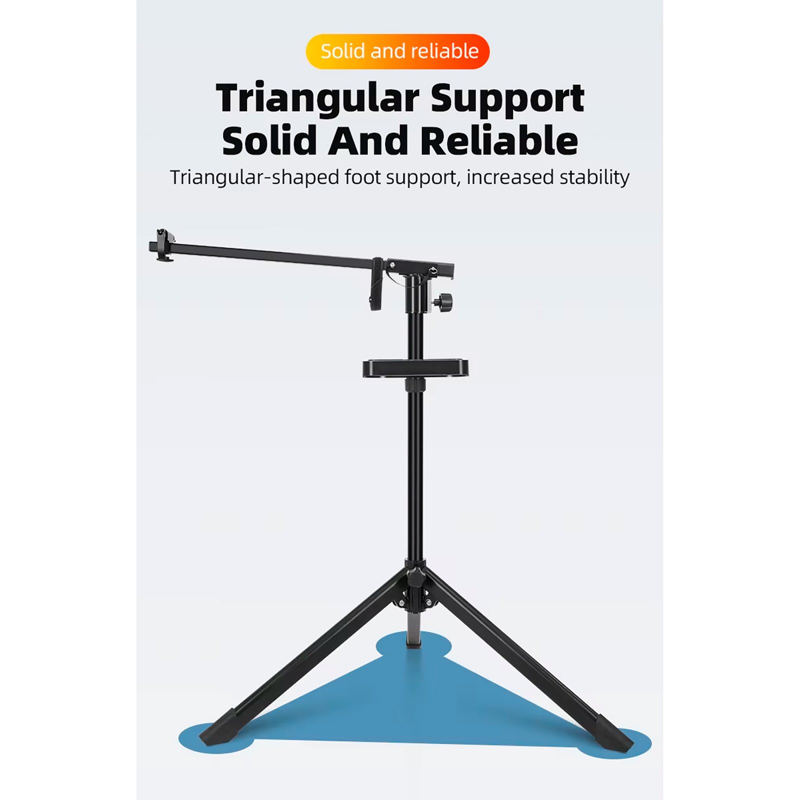 Soporte tipo trípode sólido y estable.