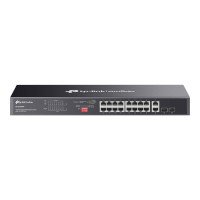 TP-LINK – SWITCH DS1018GMP. 16 PUERTOS RJ45 10/100/1000 MBPS. 2 RANURAS SFP GIGABIT. PLUG AND PLAY. CARCASA DE METAL. COLOR NEGRO.