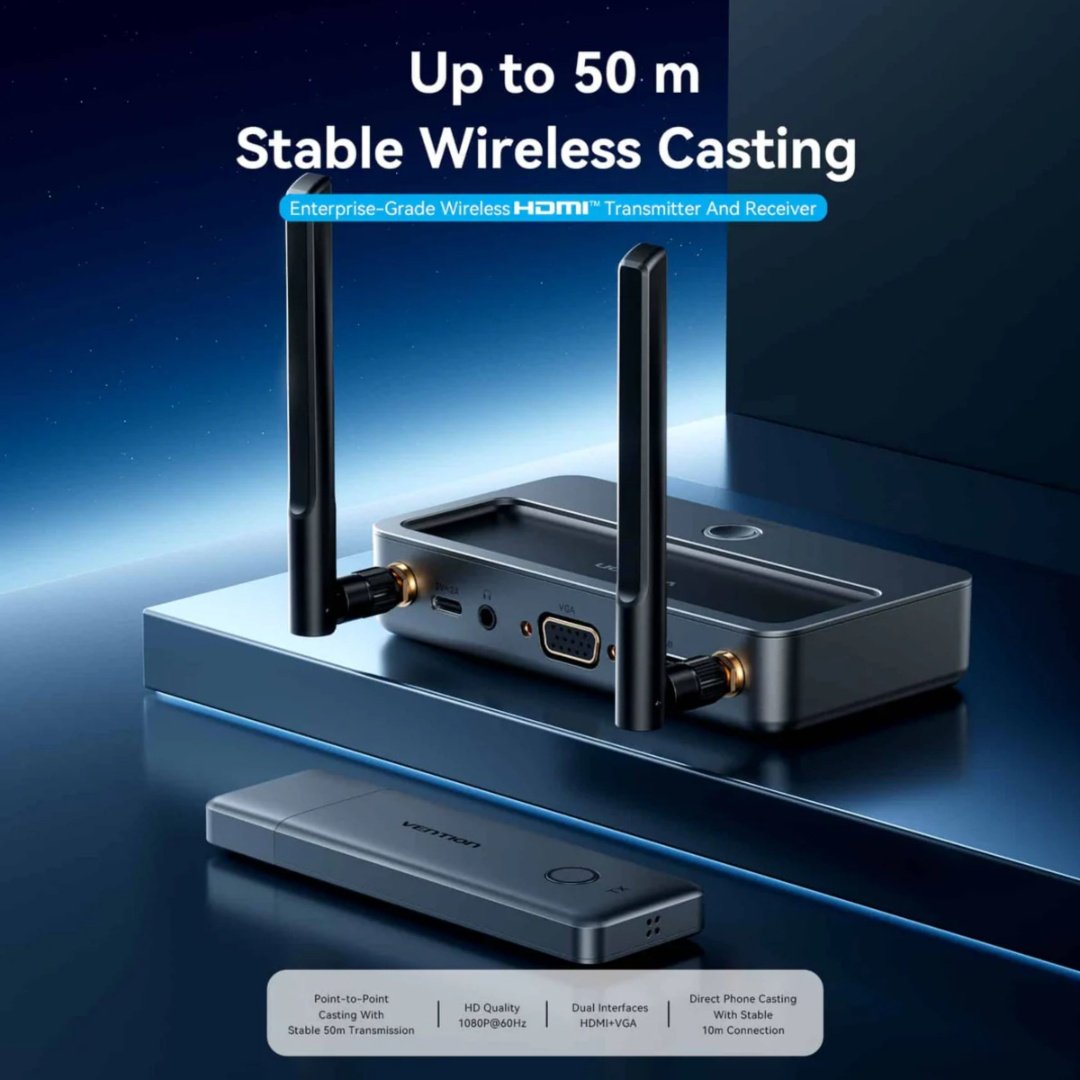 Transmisor y Receptor Inalámbrico Empresarial HDMI a HDMI + VGA + 3.5mm TRS + USB-C / Gris ADTH0 Vention