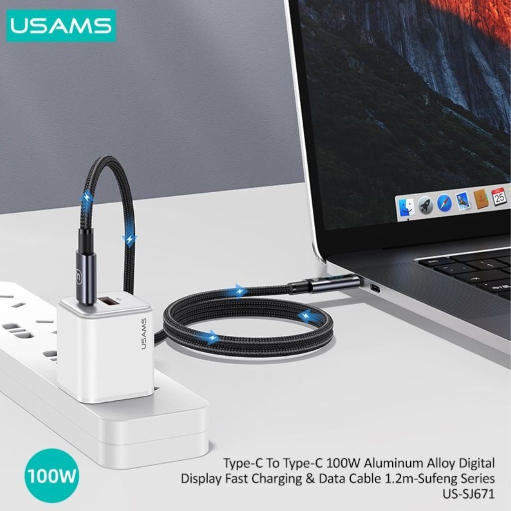 Cable de Datos Aluminio SJ671 USB C a USB C 100W 1.2M Carga Rápida con LCD USAMS
